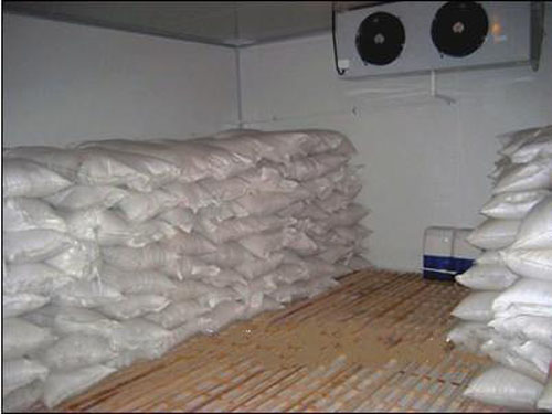 一般冷库多由制冷机制冷,利用气化温度很低的液体(氨或氟里昂)作为冷却剂,使其在低压和机械控制的条件下蒸发,吸收贮藏库内的热量,从而达到冷却降温的目的。